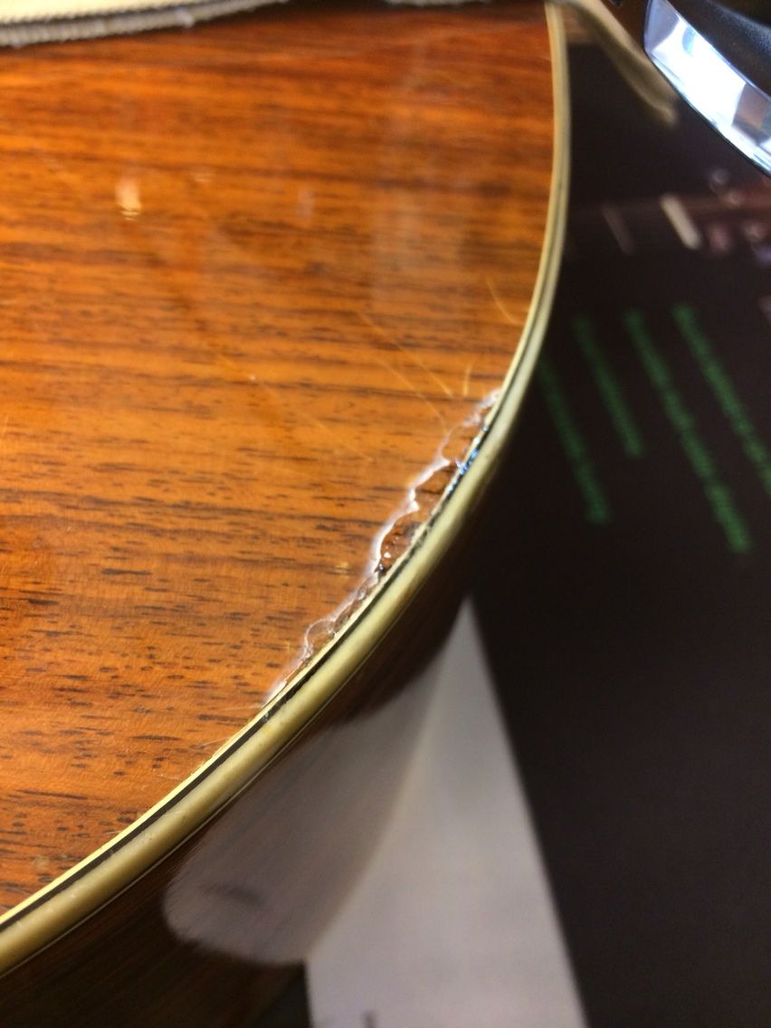 塗装のヘアラインクラックのリペア そのギターつくろいます アコースティックギター修理譚