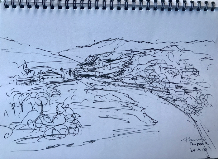 スケッチ ペン画で描く 山の絵 横浜 鶴見アトリエアリス 制作風景 日々のスケッチ