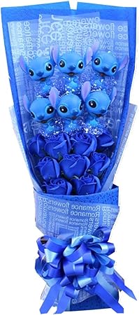 Amazon Co Jp アニメリロステッチ漫画ブーケスティッチアクションフィギュア玩具人形ブーケ人工バラブーケ 青い おもちゃ