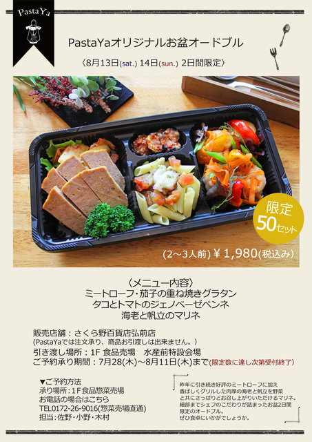 お盆はこれで決まり 今年もさくら野百貨店弘前店さんにて Pastaya