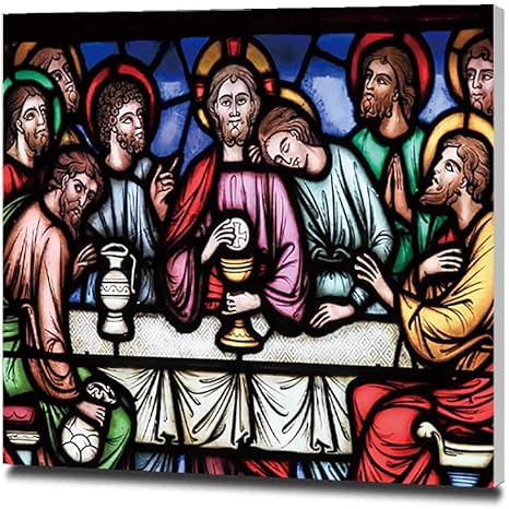 Amazon 最後の晩餐ステンドグラス アートパネル 絵画 フォトフレーム 正方形 絵画 インテリア 壁飾り フレーム装飾画 玄関 インテリア モダンアート 木枠セット 40x40cm ウォールステッカー オンライン通販