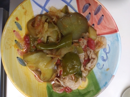 料理嫌いさんの8月21日の献立 食材は 豚コマ ピーマン 人参 玉ねぎ 茄子 トマト きゅうり 料理嫌いさんの献立