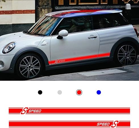 Amazon カーサイドドアスカートストリップステッカーデカール Bmw ミニクーパーs カントリーマンセブン クラブマン ジョン ペースマン用 レッド Bx 車 バイク 車 バイク
