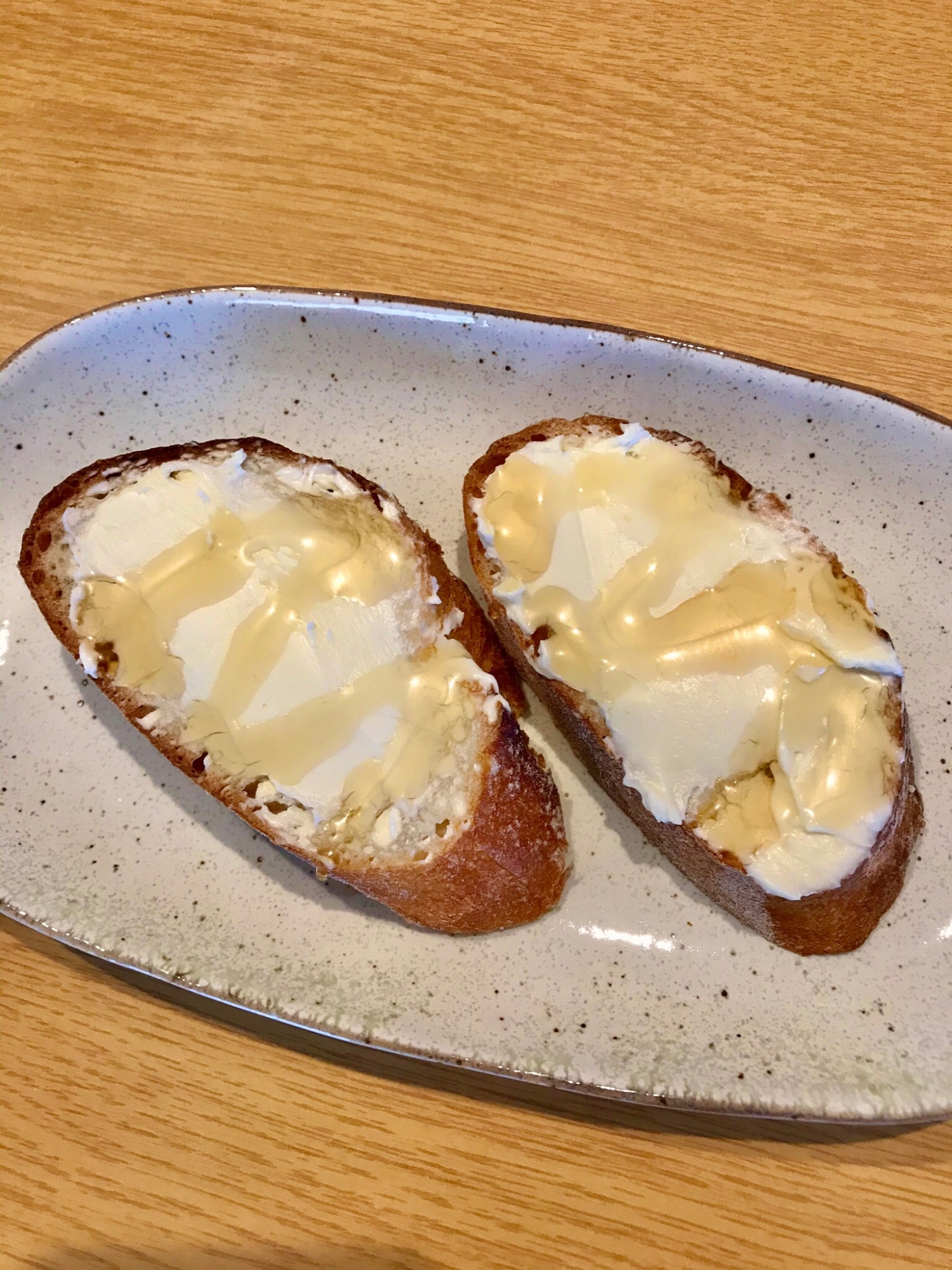 きょうの 朝ごパン ハニークリームチーズトースト です 普通にパンを焼き Kraft の フィラデルフィアクリームチーズ を塗り 上からアカシア蜂蜜をかけるだけ 忙しい朝に嬉しい超簡単な 朝食レシピです チーズのクリーミーな口当たりと酸味 それに蜂蜜の Food